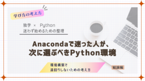 この記事では、公式Python+venv+VS Code という最小構成をおすすめしました。